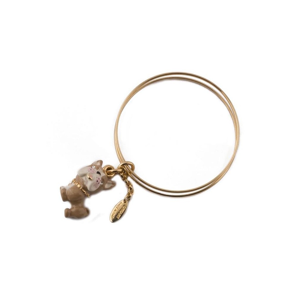 Bracciale CREART in ottone placcato oro giallo 24 Kt con cham cane bulldog beige smaltato