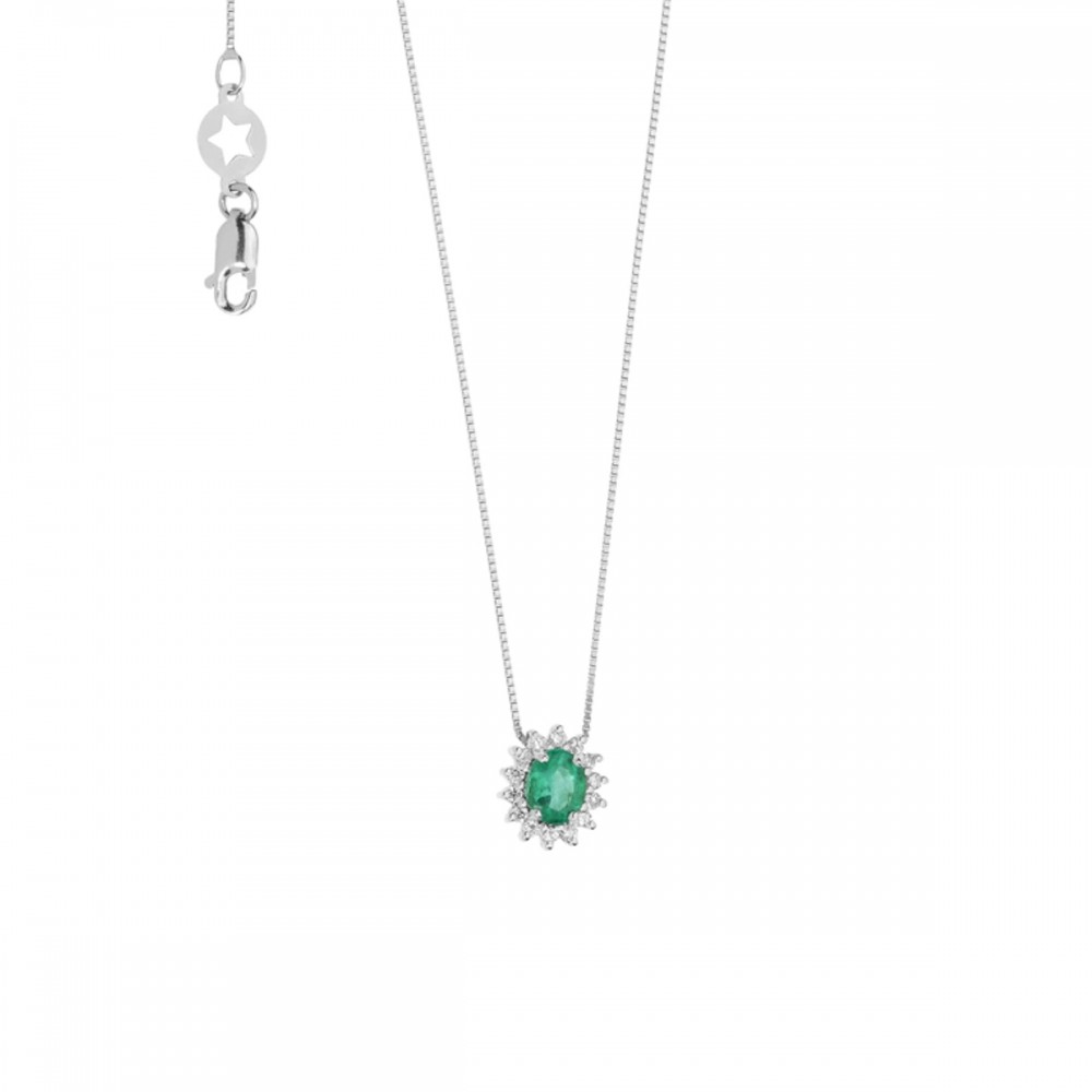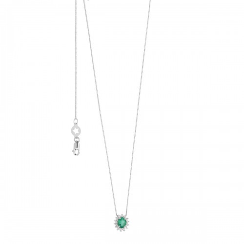 Collana Comete in oro bianco 18kt con smeraldo taglio ovale e diamanti.