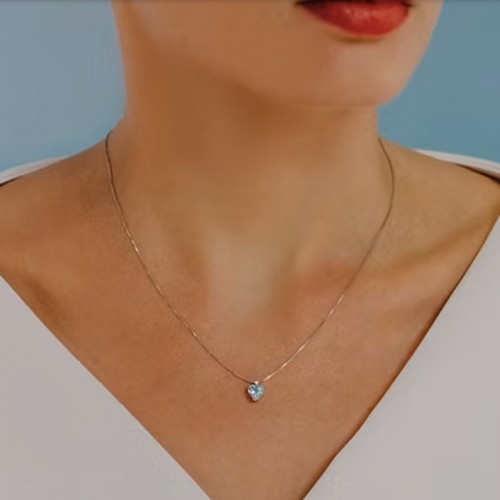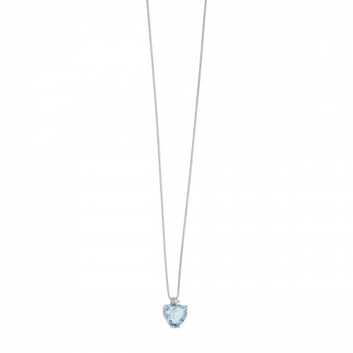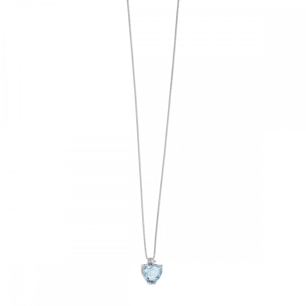 Collana Comete in oro bianco 18kt con acquamarina taglio cuore e diamante.