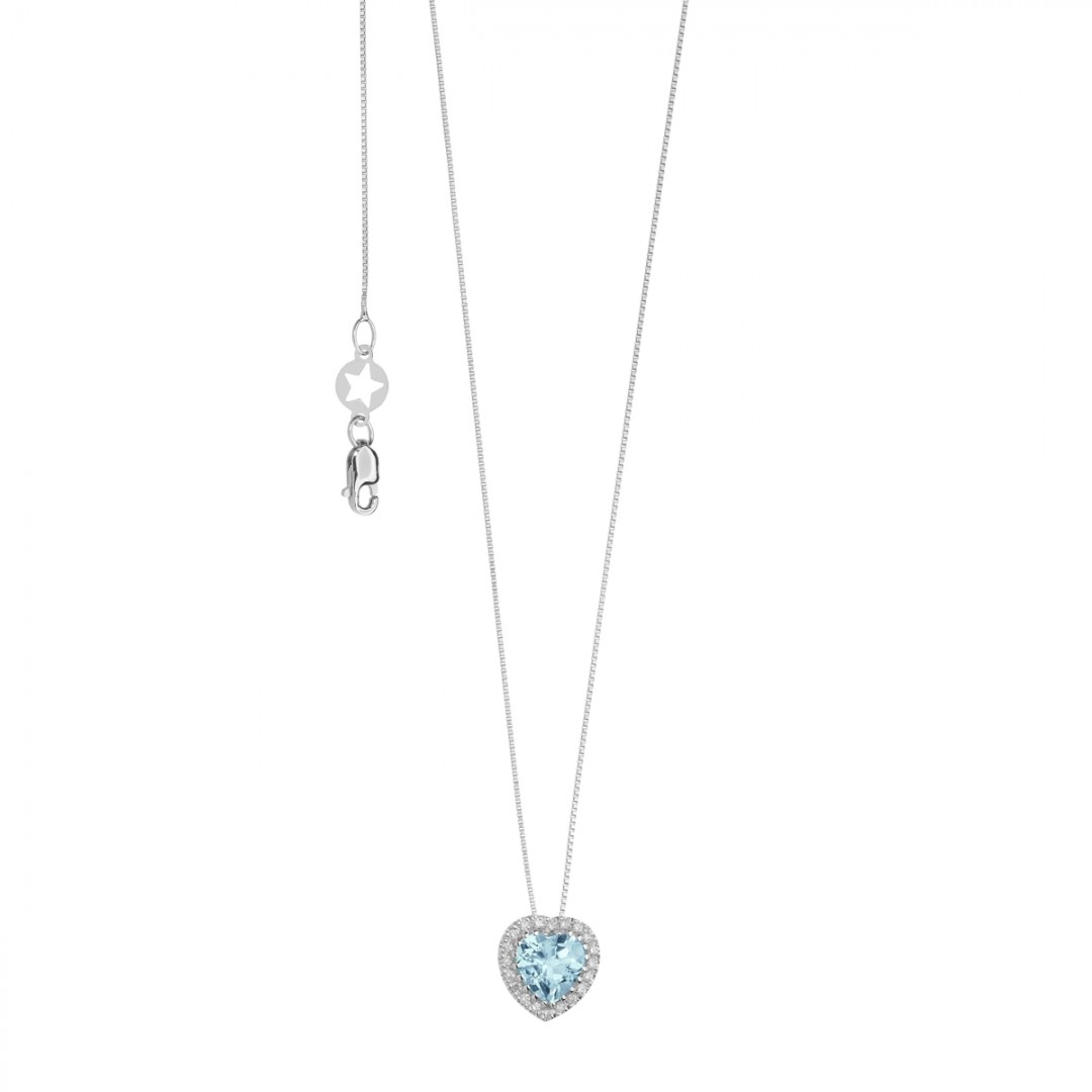 Collana Comete in oro bianco 18kt con acquamarina taglio cuore e diamante.