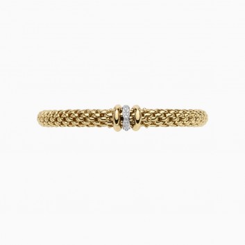 Bracciale flessibile interamente realizzato in oro giallo 18 carati con rondelle alternate in oro bianco e diamanti.