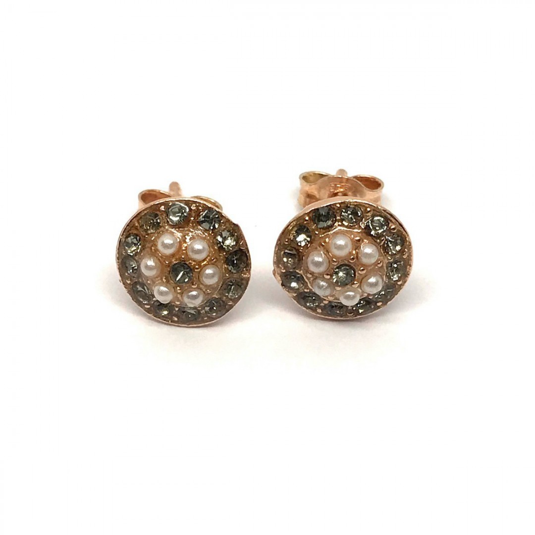 MARCELLO FONTANA Orecchini MICHELANGELO GIOIELLI in argento 925 placcato oro rosa 22 Kt con zirconi e perle