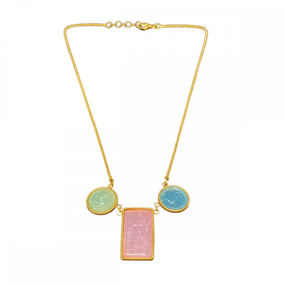 MARCELLO FONTANA collana MICHELANGELO GIOIELLI in argento 925 placcato oro giallo 24 Kt con paste vitree