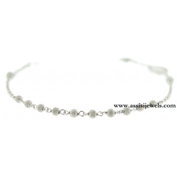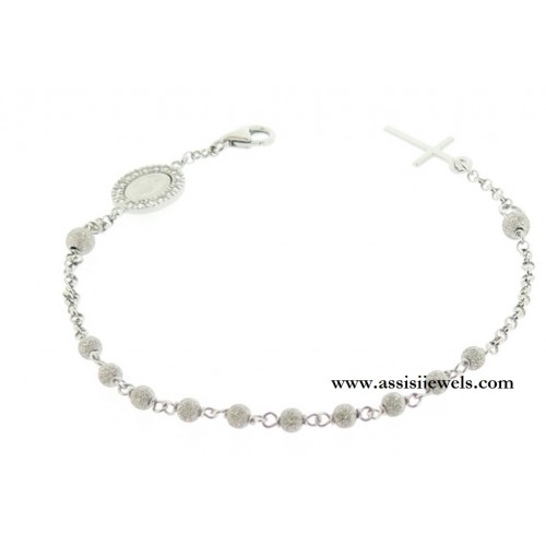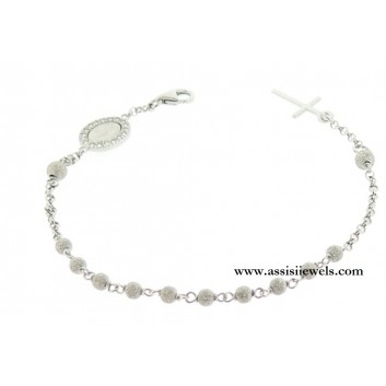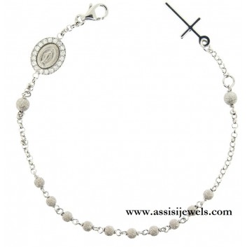 Bracciale ROSARIO in argento 925 rodiato con grani puntinati, Madonna Miracolosa impreziosita da un pavè perimetrale di zirconi e croce finale