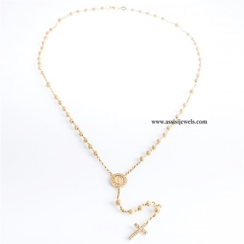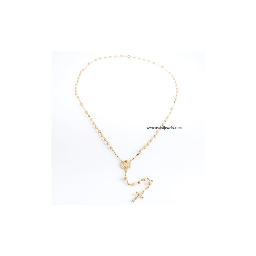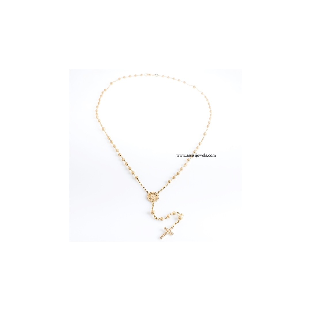 Collana ROSARIO in argento 925 placcato oro giallo 24 Kt con grani lisci, Madonna Miracolosa impreziosita da un pavè perimetrale di zirconi e croce finale sempre con pavè di zirconi
