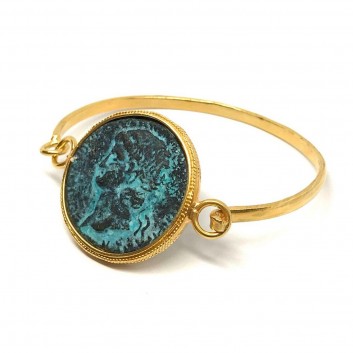 Bracciale in stile romanico MICHELANGELO GIOIELLI in argento 925 placcato oro giallo 24 Kt con moneta in bronzo