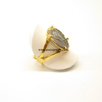 MARCELLO FONTANA Anello MICHELANGELO GIOIELLI in argento 925 placcato oro giallo 24 Kt con moneta in bronzo