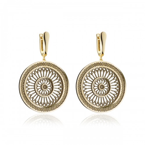 Orecchini HUMILIS in oro giallo 18 kt raffiguranti il rosone della basilica di Santa Chiara di Assisi.