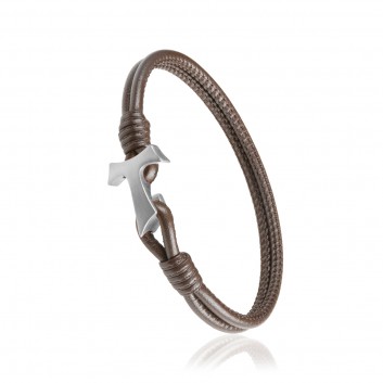 Bracciale HUMILIS in vera pelle marrone con chiusura Tau in argento 925 rodiato satinato