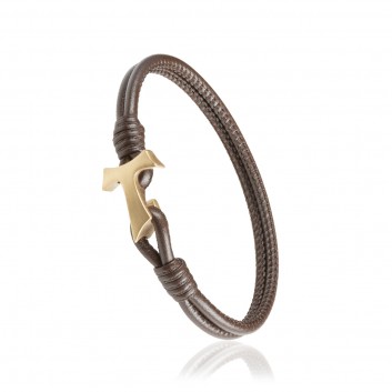 Bracciale HUMILIS in vera pelle marrone con chiusura Tau in oro giallo 18 kt satinato