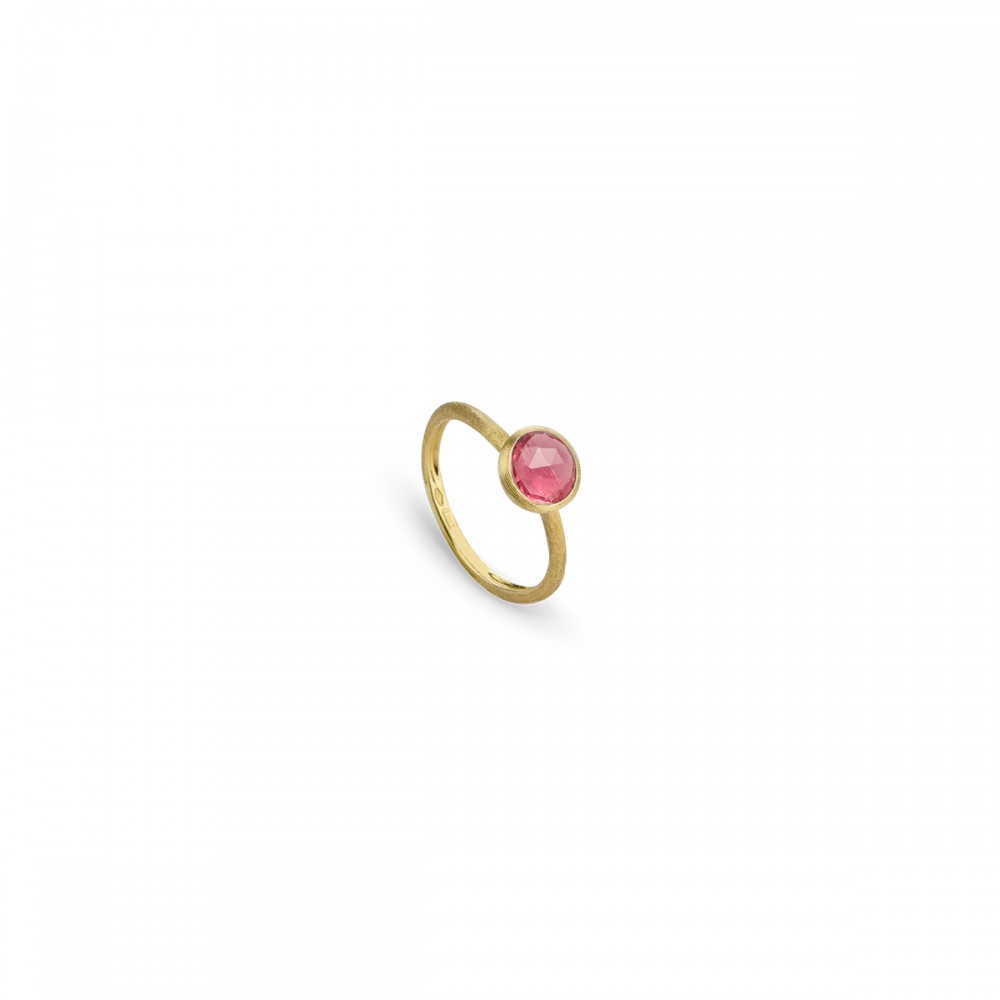 MARCO BICEGO Anello in oro giallo 18 Carati inciso a mano con l’antica tecnica del Bulino. Questo gioiello monta una Tormalina Rosa taglio Rose Cut Cushion.