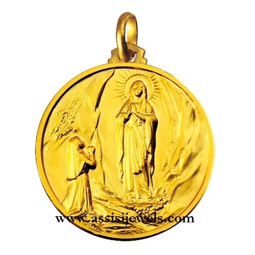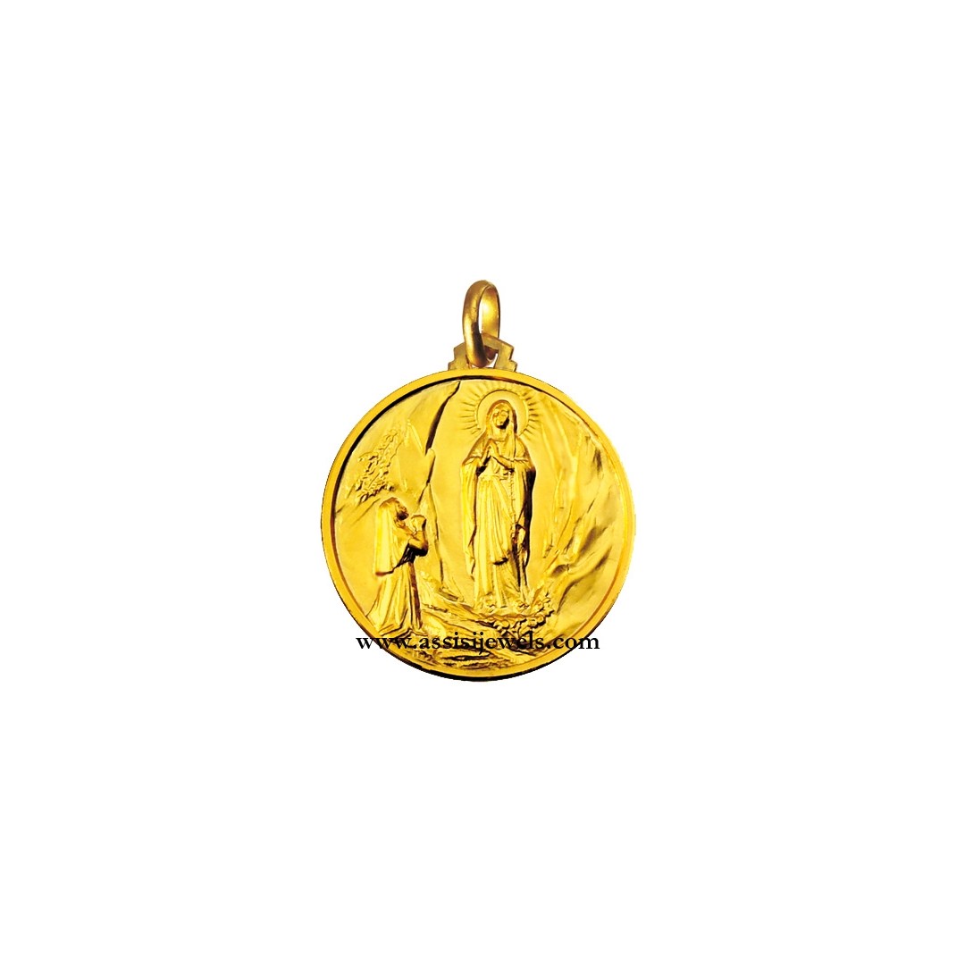 Medaglia della Madonna di Lourdes in oro giallo 18 Kt (selezionare il diametro desiderato per conoscere il prezzo corrispondente)