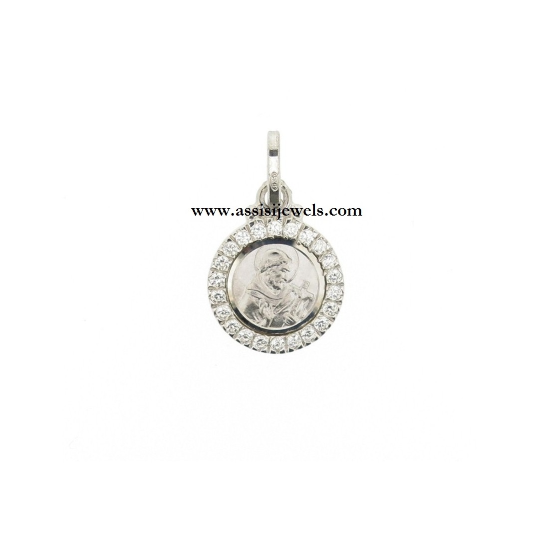 Medaglia di San Francesco in argento 925 rodiato (Prodotta esclusivamente nel diametro da 13 mm)