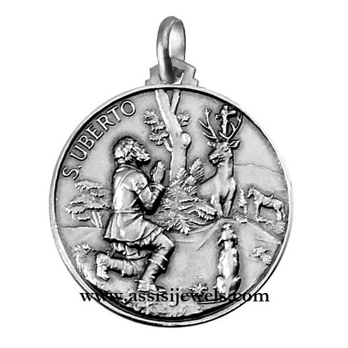 Medaglia di Sant' Uberto in argento 925 (selezionare il diametro desiderato per conoscere il prezzo corrispondente)