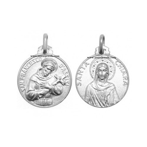 Medaglia doppia faccia di San Francesco e Santa Chiara in argento 925 (selezionare il diametro desiderato per conoscere il prezzo corrispondente)