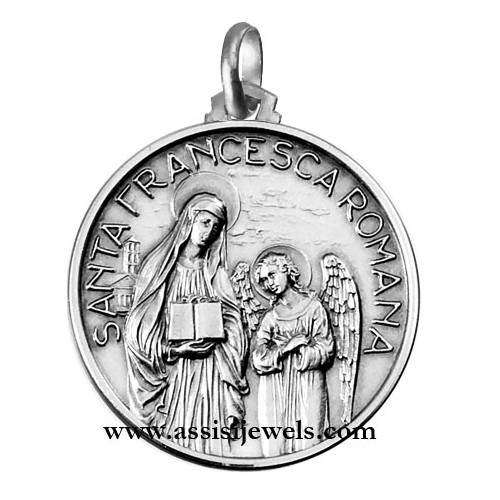 Medaglia di Santa Francesca Romana in argento 925 (selezionare il diametro desiderato per conoscere il prezzo corrispondente)