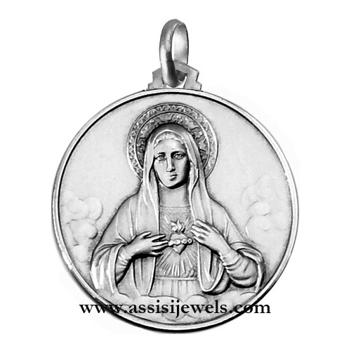 Medaglia Cuor di Maria in argento 925 (selezionare il diametro desiderato per conoscere il prezzo corrispondente)