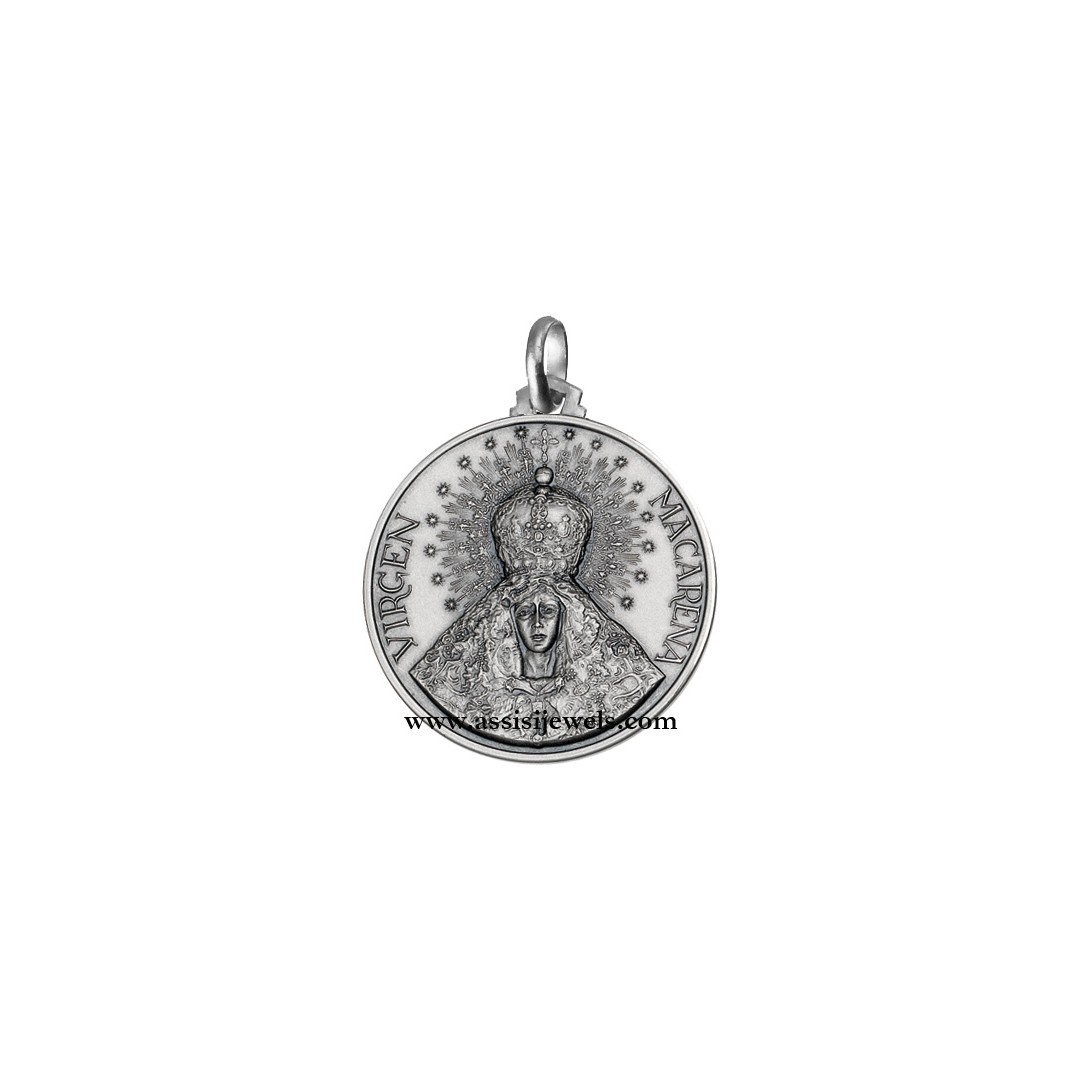 Medaglia Madonna di Macarena in argento 925 (selezionare il diametro desiderato per conoscere il prezzo corrispondente)