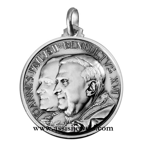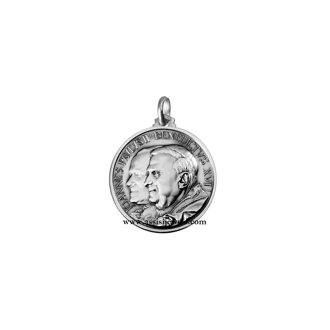 Medaglia con profilo di Papa Benedetto XVI e Papa Francesco, in argento 925 (selezionare il diametro desiderato per conoscere il prezzo corrispondente)
