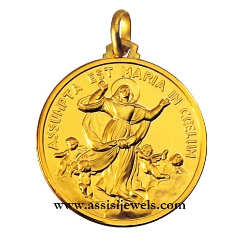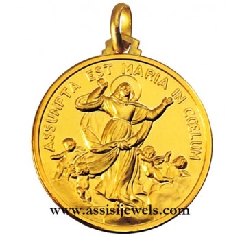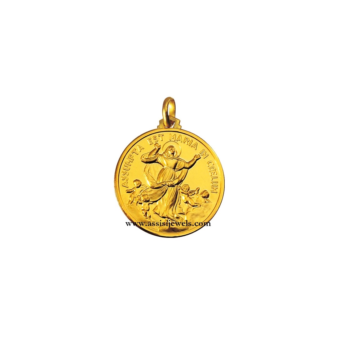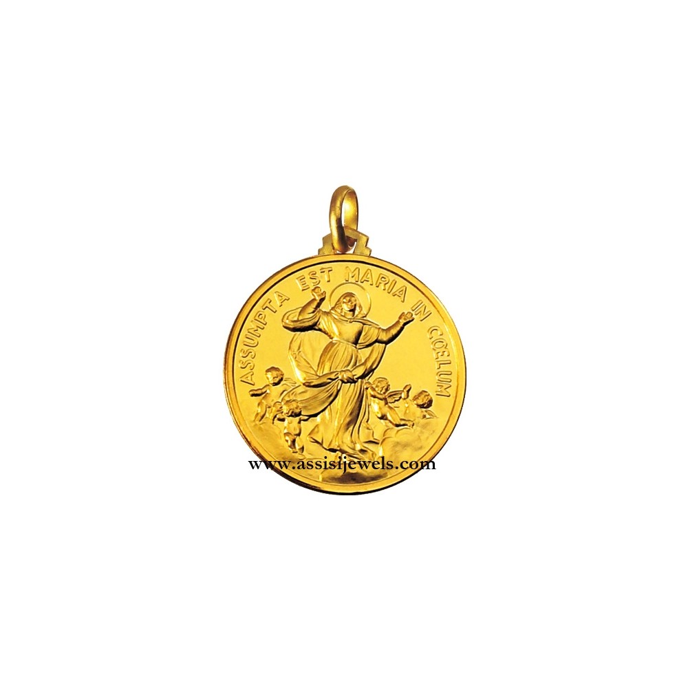 Medaglia della Madonna Assunta in Cielo in oro giallo 18 Kt (selezionare il diametro desiderato per conoscere il prezzo corrispondente)