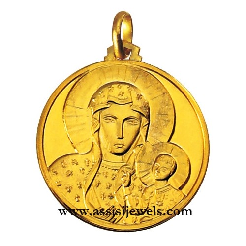 Medaglia della Madonna di Ceztokowa in oro giallo 18 Kt (selezionare il diametro desiderato per conoscere il prezzo corrispondente)