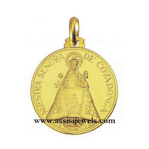 Medaglia della Madonna Covadonga in oro giallo 18 Kt (selezionare il diametro desiderato per conoscere il prezzo corrispondente)