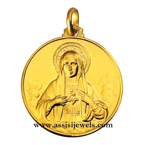Medaglia Cuor di Maria in oro giallo 18 Kt (selezionare il diametro desiderato per conoscere il prezzo corrispondente)