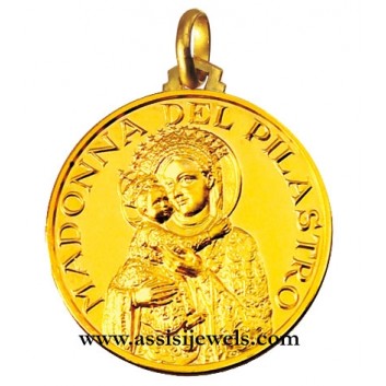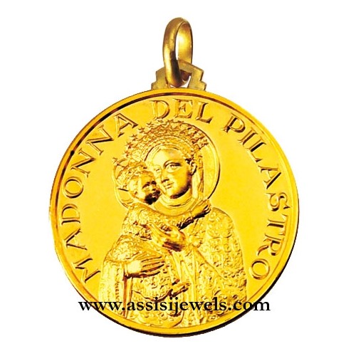 Medaglia della Madonna del Pilastro in oro giallo 18 Kt (selezionare il diametro desiderato per conoscere il prezzo corrispondente)