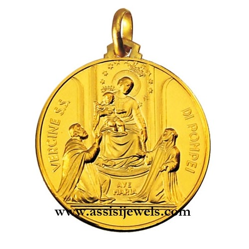 Medaglia della Madonna di Pompei in oro giallo 18 Kt (selezionare il diametro desiderato per conoscere il prezzo corrispondente)