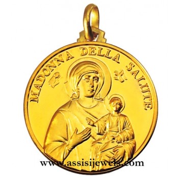 Medaglia della Madonna della Salute in oro giallo 18 Kt (selezionare il diametro desiderato per conoscere il prezzo corrispondente)