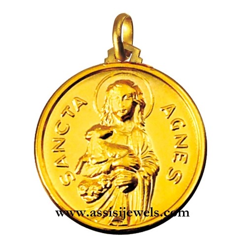 Medaglia di Sant' Agnese in oro giallo 18 Kt (selezionare il diametro desiderato per conoscere il prezzo corrispondente)