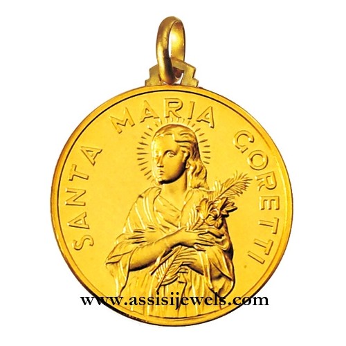Medaglia di Santa Maria Goretti in oro giallo 18 Kt (selezionare il diametro desiderato per conoscere il prezzo corrispondente)