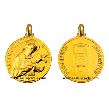Medaglia doppia faccia di San Francesco e la tomba di San Francesco in oro giallo 18 Kt (selezionare il diametro desiderato per conoscere il prezzo corrispondente)