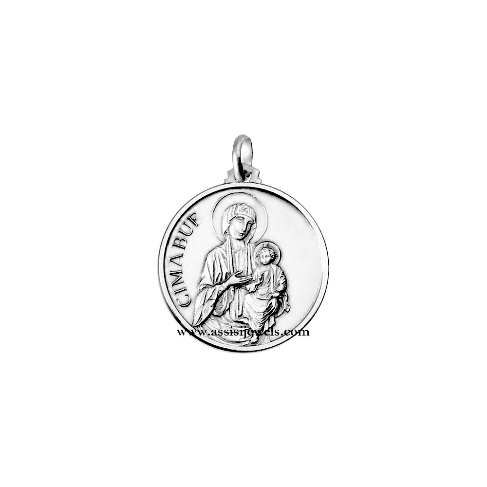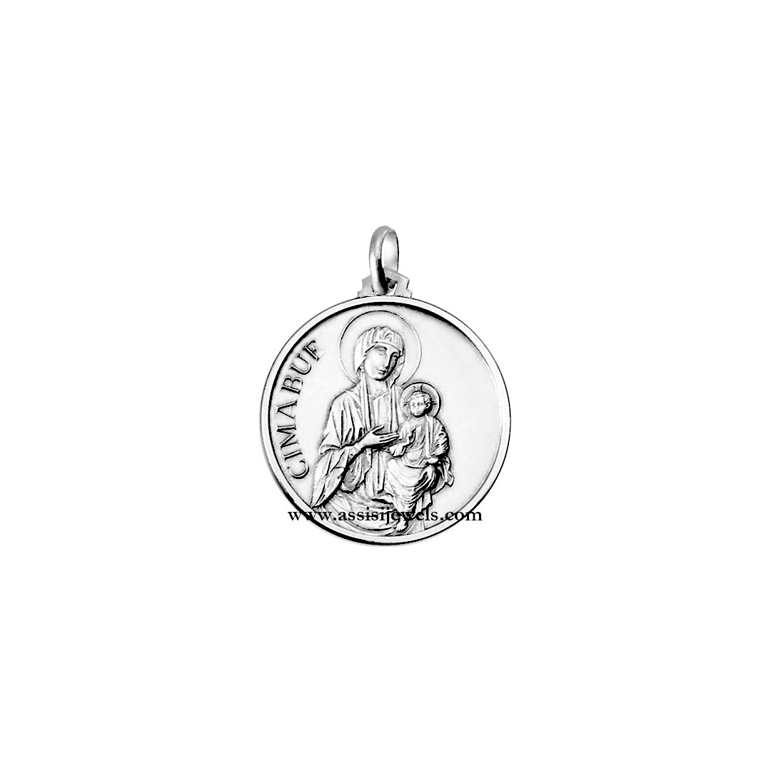 Medaglia della Madonna del Cimabue in oro bianco 18 Kt (selezionare il diametro desiderato per conoscere il prezzo corrispondente)