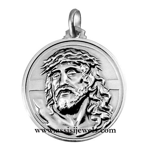 Medaglia del volto di Cristo Crocifisso in argento 925 (selezionare il diametro desiderato per conoscere il prezzo corrispondente)