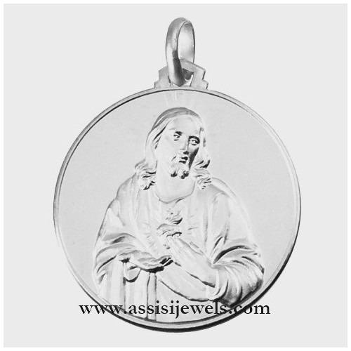Medaglia del Sacro Cuore in oro bianco 18 Kt (selezionare il diametro desiderato per conoscere il prezzo corrispondente)