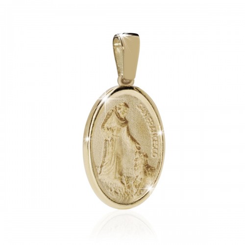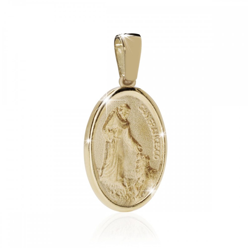 Medaglia di San Francesco con il lupo in argento 925 placcato oro giallo 24kt.