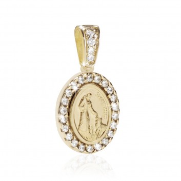 Medaglia di San Francesco con il lupo in oro giallo 18kt con zirconi.