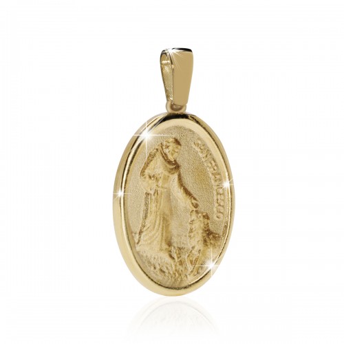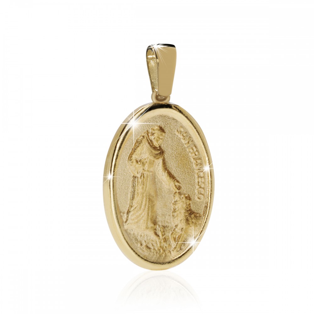 Medaglia di San Francesco con il lupo in argento 925 placcato oro giallo 24kt.