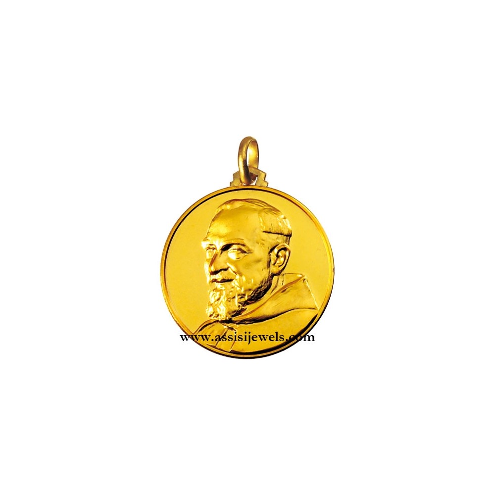 Medaglia di San Padre Pio da Pietrelcina in oro giallo 18 Kt (selezionare il diametro desiderato per conoscere il prezzo corrispondente)