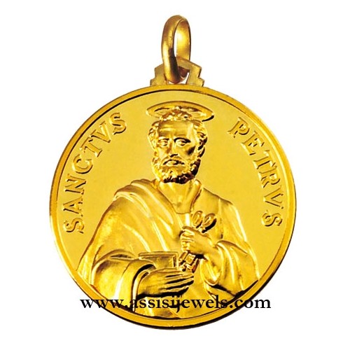 Medaglia di San Pietro in oro giallo 18 Kt (selezionare il diametro desiderato per conoscere il prezzo corrispondente)