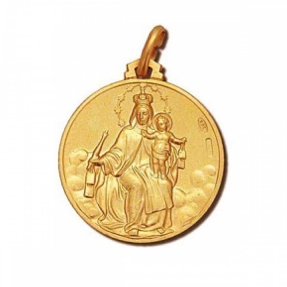 Medaglia della Madonna del Carmine in oro giallo 18 Kt (selezionare il diametro desiderato per conoscere il prezzo corrispondente)