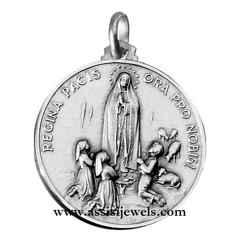Medaglia della Madonna di Fatima in argento 925 (selezionare il diametro desiderato per conoscere il prezzo corrispondente)