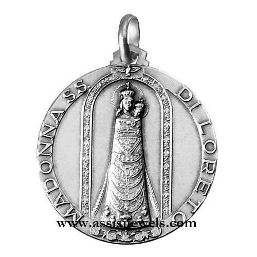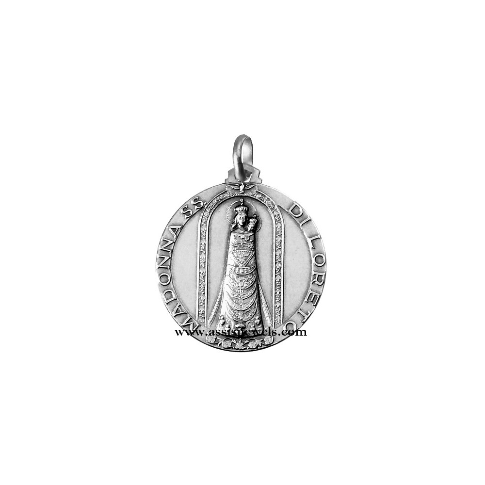 Medaglia della Madonna di Loreto in argento 925 (selezionare il diametro desiderato per conoscere il prezzo corrispondente)