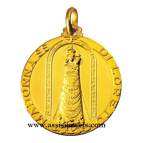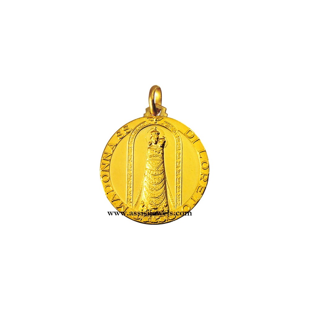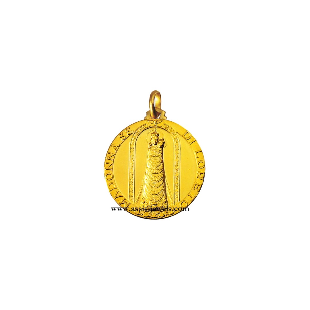Medaglia della Madonna di Loreto in oro giallo 18 Kt (selezionare il diametro desiderato per conoscere il prezzo corrispondente)
