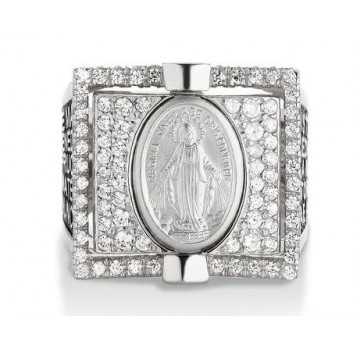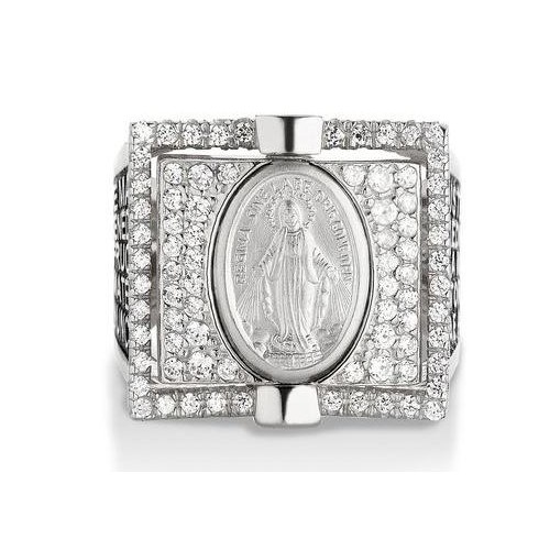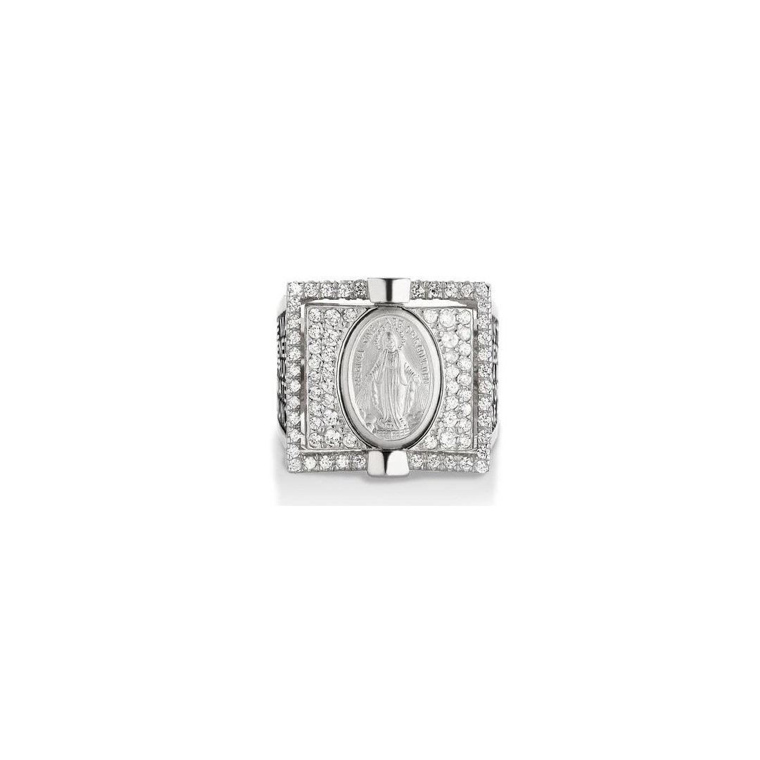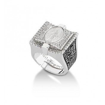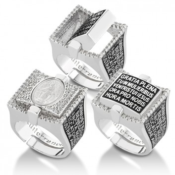 Anello REVERSO MEDITERRANEO GIOIELLI in argento 925 rodiato con preghiera dell'Ave Maria in lingua latina, smalto a fuoco nero e zirconi