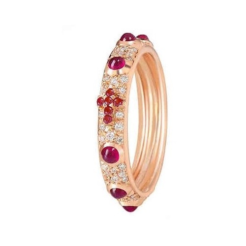 NARDELLI anello rosario in oro rosa 18 Kt con pavè di diamanti naturali taglio brillante ct 0.42, corona in rubini naturali taglio cabochon e croce in rubini ct 0.70