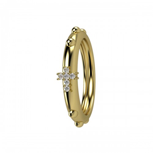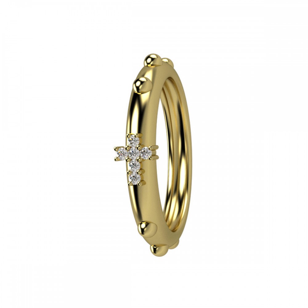NARDELLI anello rosario in oro giallo 18 Kt con croce in diamanti naturali taglio brillante ct. 0.03, colore G, purezza IF
