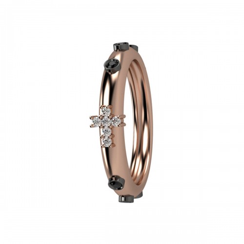 NARDELLI anello rosario in oro rosa 18 Kt con corona in diamanti naturali neri taglio brillante ct. 0.10 colore G, purezza IF e croce in diamanti naturali taglio brillante ct. 0.03, colore G, purezza IF