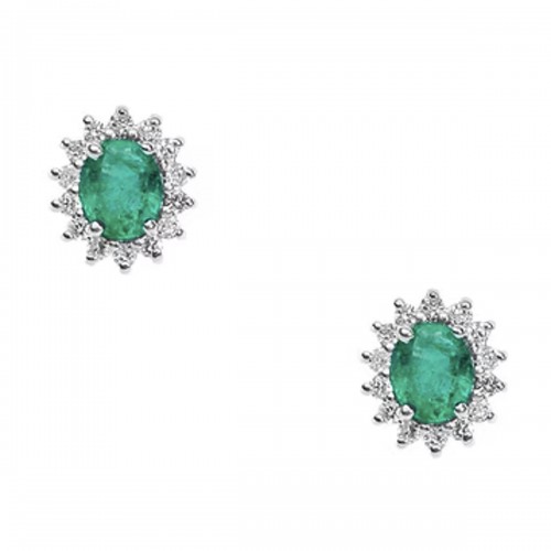 Orecchini Comete in oro bianco 18kt con smeraldi e diamanti.